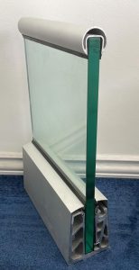 سیستم هندریل که ظاهر از روبرو دو تا مقطع آلومینیومی که یک شیشه در وسط این دو قرار گرفته دیده میشود